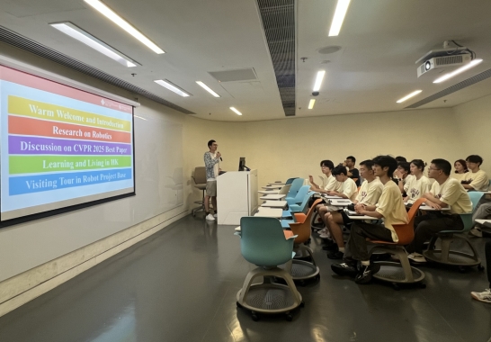 在高校交流环节,代表团首站到访香港理工大学VLAR实验室(Visual Learning and Reasoning Group)。该实验室云鹏老师全面介绍了在3D视觉、机器学习与机器人智能等领域的研究成果,特别围绕CVPR 2025最佳论文进行了深入讨论。期间,实验室博士生分享了在港求学体验和PhD申请经验。代表团随后参观了位于工业中心的实验室。