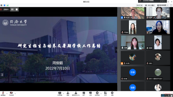 7月10日下午,暑期学校闭幕式如期举行,苗夺谦教授作为特邀嘉宾出席了闭幕式。周俊鹤副院长首先全面总结了研究生招生培养和暑期学校工作,介绍了研究生推免、统考、导师选择、就业去向等学生关心的问题,并代表学院热情欢迎同学们来此深造。接着,各学科负责研究生招生工作的教务老师祝愿学员们保研或考研顺利,并期盼明年九月与大家在同济相见。最后,苗夺谦教授寄语学员要怀揣梦想、砥砺前行,并向学员发出诚挚邀请:我们在同济等你!伴随着学员们陆续发来感谢留言,本届暑期学校圆满落幕。