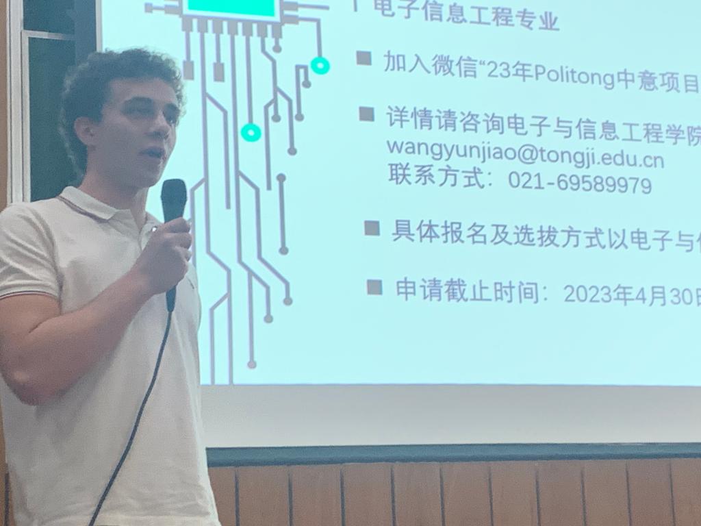 Politong项目电子信息工程专业毕业校友王文泽、都灵理工大学意大利交流生Gianmarco先后分享了项目学习经验,鼓励大家抓住机遇,应对挑战。最后,来自中意、机械及开云官网的专家为学生们答疑解惑,并欢迎感兴趣的同学积极报名,现场气氛热烈。