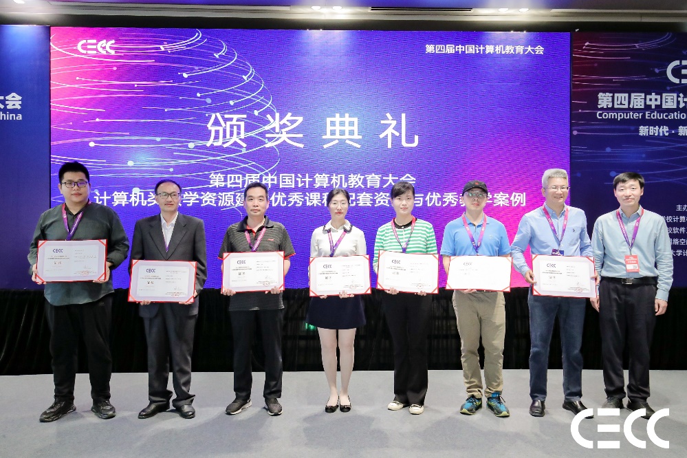 秦国锋老师(左二)获中国计算机教育大会计算机类教学资源建设优秀教学案例特等奖