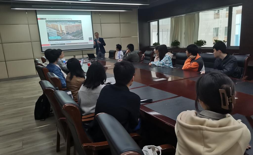 2023年中法双文凭项目宣讲会随后举行。Nicolas PROST先生向与会同学详细介绍了双文凭项目的学校背景和历史,巴黎高等电信学校的研究平台、工程师学校的优势、双文凭项目的特色、申请流程、奖学金和住宿生活等情况,并就学生关心的问题进行了现场答疑。