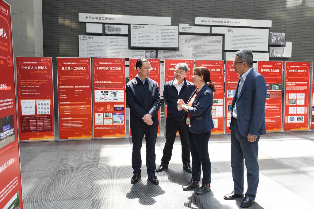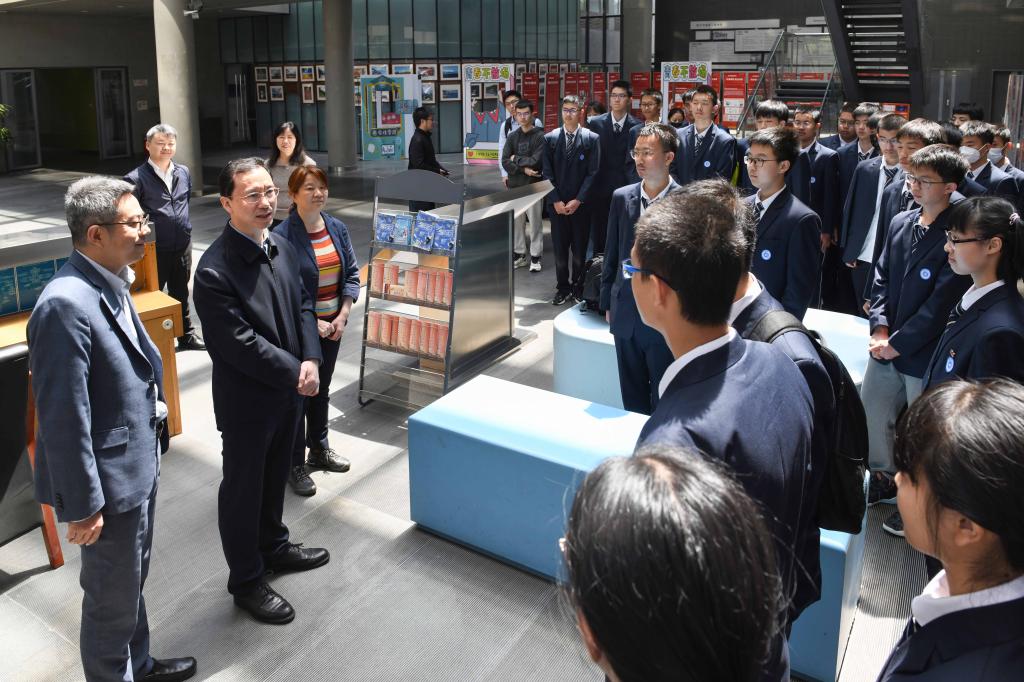 调研期间,郑校长一行在学院党政领导的陪同下参观了智信馆一楼大厅的“贯彻落实党的二十大精神 深入推进‘十四五’规划实施”展,并与正在参观无人车展示的曹杨二中的同学们进行了亲切交流。