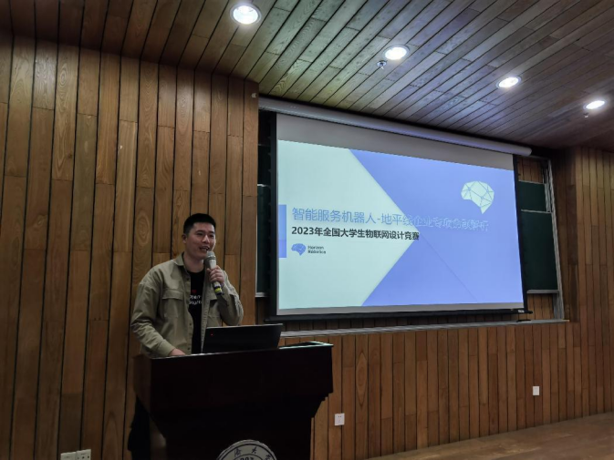 全国大学生物联网设计竞赛组委会王东秘书长代表组委会致辞,介绍了2023年全国大学生物联网设计竞赛(华为杯)的背景、概况、赛程、赛制、巡回技术讲座安排等内容。