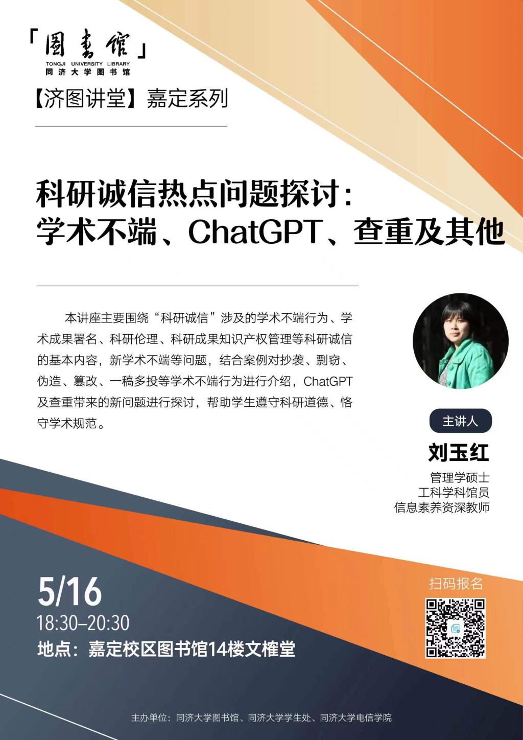 5月16日,学院博士生第九党支部特邀学校图书馆工科学科馆员刘玉红老师开展了“科研诚信热点探讨——学术不端、论文查重、OA期刊、ChatGPT的影响”学术讲座。刘玉红老师深耕信息素养领域多年,在科研诚信方面具有丰富经验,她围绕科研诚信基本内容、科研诚信热点探讨、科研规范操作范式建议三方面,与大家分享了相关理论与经验。