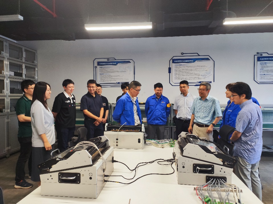 王峻一行参观了先进控制技术实验室、嵌入式系统开发实验室、自动化系统开发实验室、数字与智能化实验室,并通过远程监控画面了解中船动力集团各厂区情况。