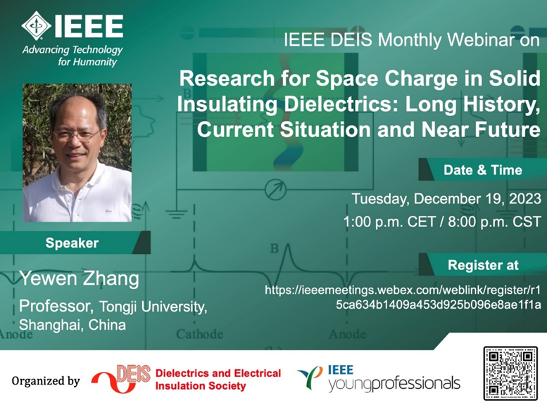 12月19日,应IEEE电介质与电气绝缘协会(DEIS)邀请,开云官网电气工程系张冶文教授作了主题为《Research for Space Charge in Solid Insulating Dielectrics: Long History, Current Situation and Near Future(固体电介质空间电荷研究:历史、现状及未来)》的全球直播网络报告。该网络报告会由IEEE电介质与电气绝缘协会和IEEE青年专家组联合主办,邀请全球电介质与电气绝缘领域顶级专家介绍前沿进展,分享科研经验。本次报告吸引了来自全球工业界和学术界的专家和教授报名和在线观看。