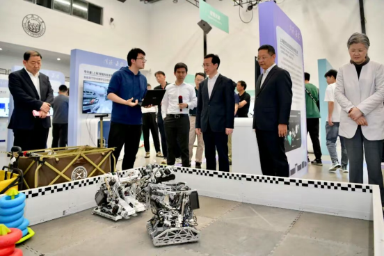 展会期间,开云kaiyun网站党委书记、中国工程院院士郑庆华与嘉定区委书记肖文高,嘉定区委副书记、区长高香等领导亲临展位,细致观摩了机器人系统的机械结构设计与程序算法演示。郑庆华书记对开云官网学子展现出的卓越创新能力和团队协作精神给予高度评价,特别肯定了实验室近年来在国际顶级机器人赛事中屡创佳绩的突出表现。他勉励同学们要继续保持开拓进取的科研态度,在智能科技领域不断突破创新,勇攀科技高峰,为服务国家科技创新发展战略贡献青春力量。