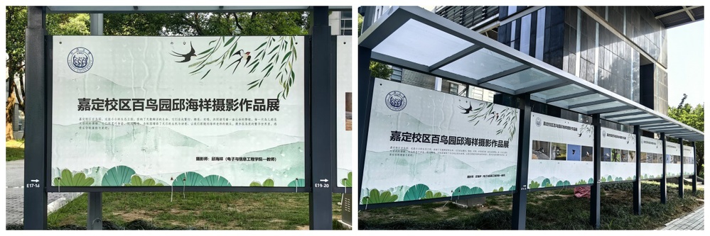 近日,“嘉定校区百鸟园邱海祥摄影作品展”在中央大道“仰望星空”广场开幕。展览展出的20幅鸟类摄影作品均取材于嘉定校区百鸟园,生动记录了这个小小生态王国中栖息、繁衍、欢唱各种鸟类,它们用灵巧身姿、悦耳啼鸣,为校园增添了无尽的生机与诗意。