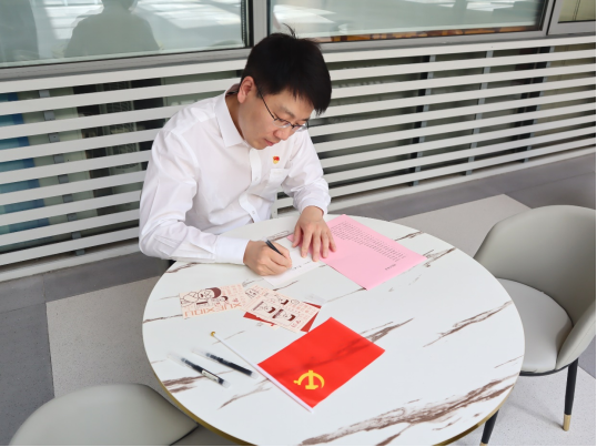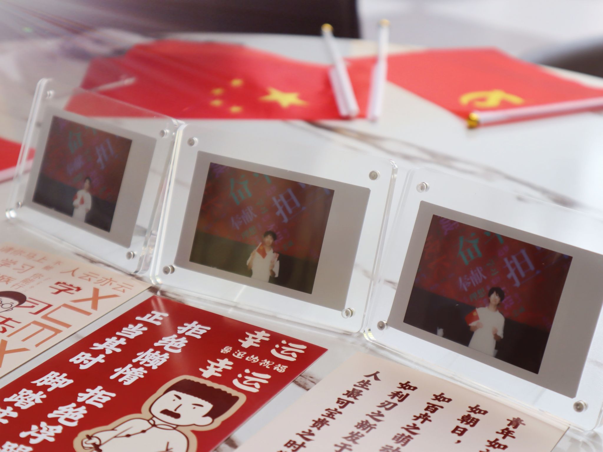 在场党员们也在明信片上郑重写下个人承诺,“成为党员不是光环,而是冲锋在前的号角。入党不是‘人生终点’,而是新的开始......”快门是今天的句号,相框是明天的冒号”。以影像定格、以文字寄语的双重温度,让入党初心可视化、具象化,也让言语间的政治承诺转化为可触摸、可凝视的成长坐标。