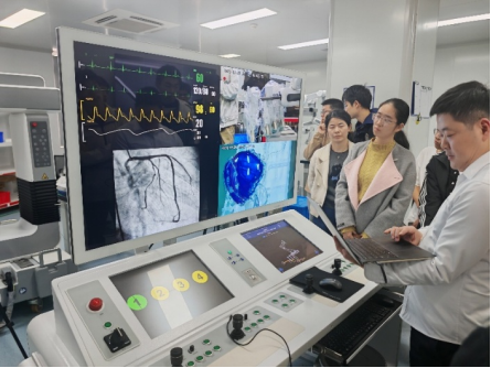 在奥朋医疗,机器人系统流畅、稳定地在无人操控的情况下自主完成了一次介入手术操作。现场工程师详细讲解了该技术在血管介入治疗中的潜在价值,包括如何通过具身智能新范式提升手术机器人智能化水平、降低医生操作负担,以及未来在远程医疗与个体化治疗中的应用前景。通过参观,同学们对医疗人工智能和手术机器人的未来发展方向有了更为清晰的认识。