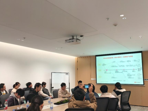 本次参访以“走近国产AI框架、理解大模型发展、激发创新意识”为主题,旨在帮助低年级本科生在真实产业环境中感知人工智能技术的发展脉络与应用前景。活动伊始,工程师从整体上介绍了昇思MindSpore的发展背景、技术定位与生态布局,之后结合实际案例,向同学们讲解了深度学习与大模型技术的发展过程,从早期神经网络到当前的超大规模模型训练,再到模型推理与落地应用,让同学们对人工智能技术演进有了清晰、系统的认识。