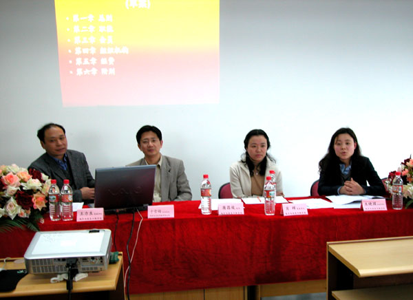 会议由青联会首届理事会副理事长戴毅茹主持,相关与会人员先后发表了热情洋溢地讲话。蒋昌俊院长首先代表学院对青联会的成立表示良好地祝福和殷切期望;于雪梅代表校青联会对电信学院青联会的成立表示祝贺并献言献策;王力生理事长回顾了青联会筹备情况,并对以后的的工作提出了具体要求;会员代表孙海平在大会上发言,倾诉了青年教师的心声;院青联会首届理事会秘书长郝泳涛向大会报告本学期拟开展的活动计划。
