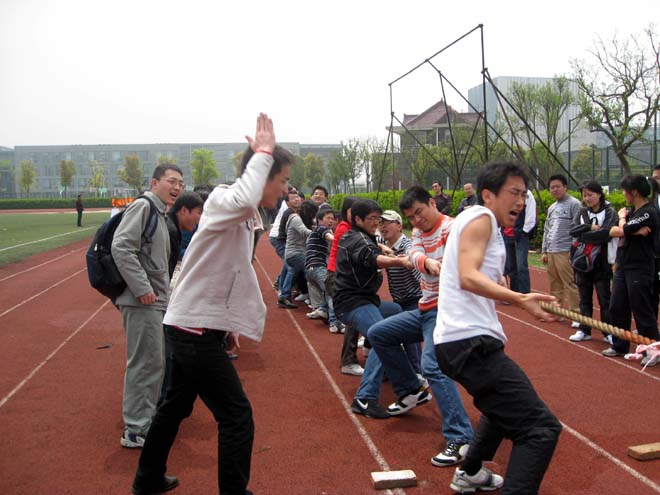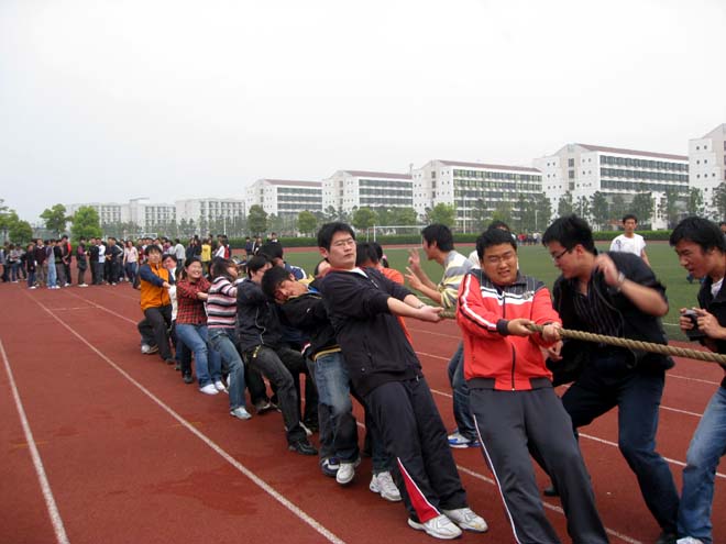 4月14日中午,学院研究生电信之春系列活动之“携手共进,e路辉煌”拔河比赛在嘉定校区田径场举行,包括各专业导师在内的百余名师生参与了此次比赛。