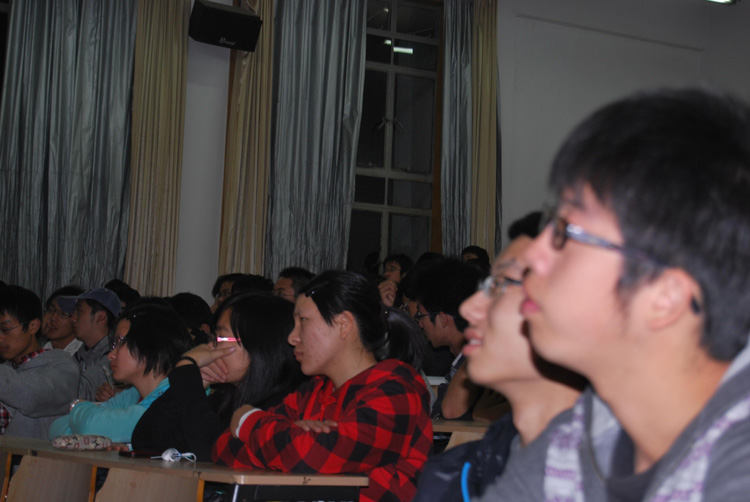 萧教授将专业知识用幽默诙谐的话语,形象生动的比喻作了深入浅出的讲解,同学们不时报以热烈的掌声。两个小时的讲座后,很多同学都意犹未尽,又与萧教授进行了互动。(刘 晶)