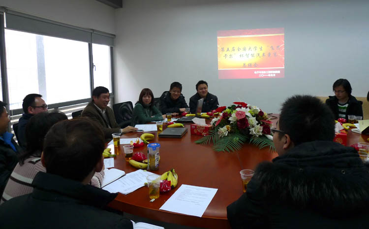 会上,比赛指导教师朱 劲、罗 峰、周爱国老师对第五届参赛的情况进行了总结,参赛学生代表干瑞汇报了参加比赛的心得体会。金炜老师对指导教师的辛勤劳动和参赛队员的拼搏精神给予了充分肯定,并和与会者讨论了参加下一届比赛的备战方案和备战思路。