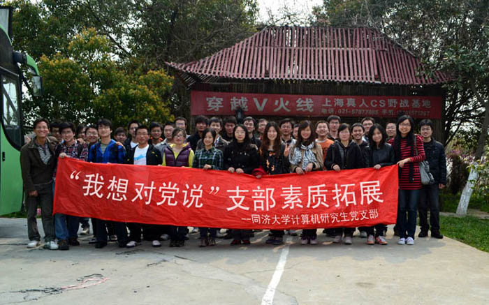 4月10日,计算机联合党总支组织2010级研究生党员到松江大学城附近开展“我想对党说”素质拓展活动。整个活动以迎接建党九十周年为主体,包含“我想对党说”交流,党务公开,党员约束与激励机制研讨以及“保卫上海”真人CS对抗比赛。