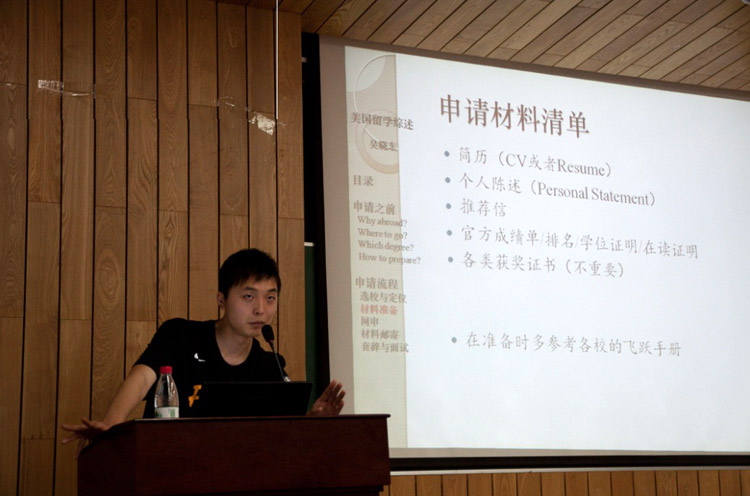 活动邀请到来自电信、机械、汽车、材料、土木等学院申请成功到美、德、法、英、日、加拿大等国继续深造的十几位同学来到现场,为与会的同学们介绍经验、答疑解惑;同时还邀请了同济BBS欧美澳版主来到现场与同学们倾心交流。