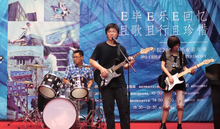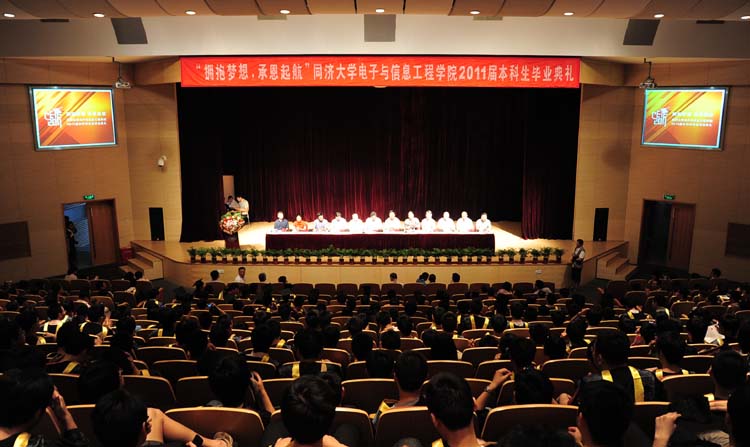 6月10日,开云官网首次别具特色的2011届本科生毕业嘉年华活动在嘉定校区举行。本次毕业嘉年华活动主题为“E毕E乐E回忆,且歌且行且珍惜”,活动分四大版块,分别为“回首难忘同济情,EE不舍学院恩”――院主题班会;“拥抱梦想、承恩起航”――院2011届毕业典礼;“SHOW色可餐,��舞人”――院毕业下午茶和“E如当初,同JI在心”――电信之夜。