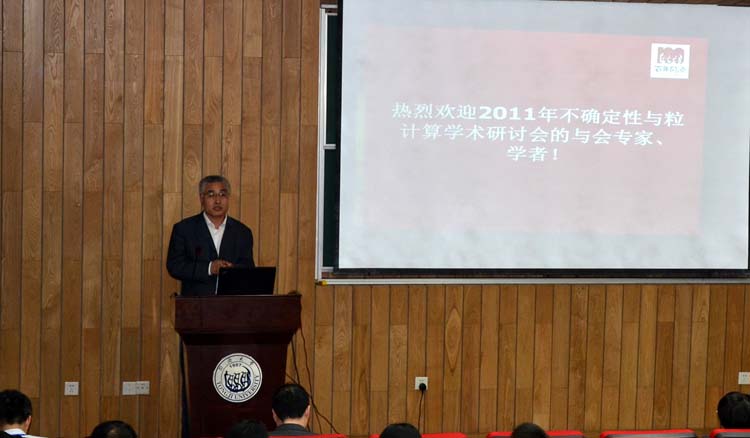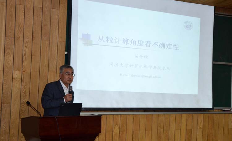 研讨会以“不确定性与粒计算”为主题,8场大会报告中,12位专家围绕粒计算中的不确定性分析与度量、不确定性问题处理的模型及方法、云模型等作了精彩的报告。我校苗夺谦教授也在大会上作了“从粒计算角度看不确定性”的报告。