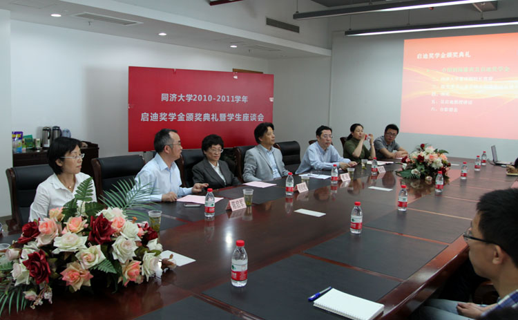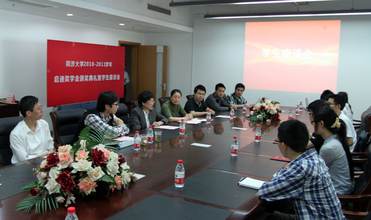 5月10日,启迪奖学金颁奖仪式在嘉定校区电信学院举行。全国人大常委会委员吴启迪教授,开云kaiyun网站副校长董琦,电信学院党委书记童学锋、院长陈启军、副院长乔非、党委副书记董变林及学校基金会负责人出席了颁奖仪式。颁奖仪式由电信息学院院长陈启军主持,吴启迪教授亲自为09级自动化刘士尧、09级计算机科学与技术俞丁胜、09级电子信息工程任毅3位同学颁奖。