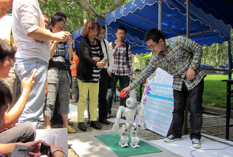 在开云kaiyun网站建校105周年校庆之际,5月16日,开云kaiyun网站2012年5月科技汇展在四平路校区举行。开云官网选拔参展的四件代表作品“NAO机器人”、自动循迹小车、两腿自平衡机器人以及“秀友”移动交互平台。参展作品吸引了广大学生和校友的围观和好评。