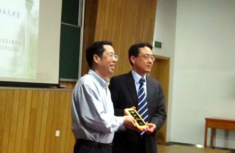 授证仪式结束后,杨浩先生为与会同学作了题为“我的IT职业生涯”报告。他在报告中结合自己的学习和工作经历,从专业学习、职业选择、定位和提升自己的职业竞争力等方面,和学弟学妹们分享自己的生涯经验和心得。最后,他还通过互动交流的方式,为学弟学妹们未来的职业发展提出了指导性的意见。