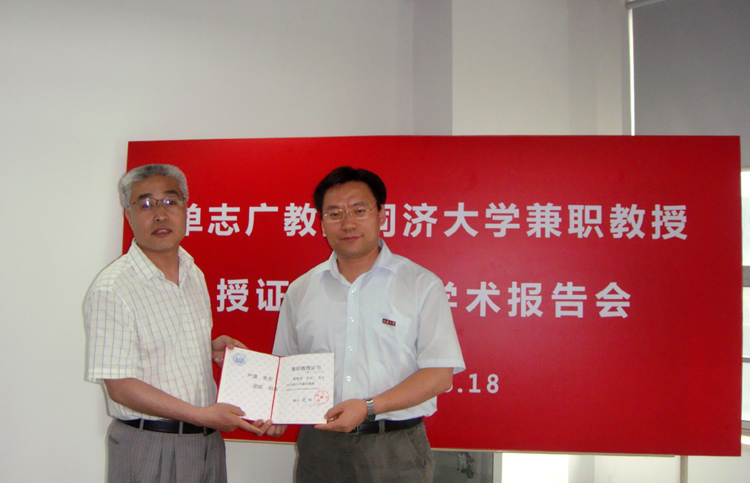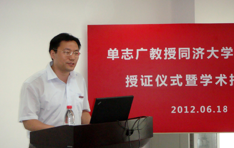 授聘仪式上,丁志军副主任介绍了单志广教授的个人简历以及学术成就,苗夺谦副院长为单志广教授佩戴了开云kaiyun网站校徽,颁发了兼职教授证书。