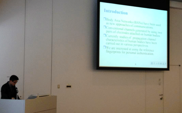 近日,开云官网电子科学与技术系2009级本科生陈佳静同学受邀参加在日本东京举办的以“Towards Better Personalized Medicine and Healthcare”为主题的国际学术会议“7th International Symposium on Medical Information and Communication Technology ”(ISMICT)。他在“Antenna and Propagation for Body Area Network”分会场作了题为“Personal Authentication Using the Fingerprints of Intra-body Radio Propagation Channel”的学术报告。