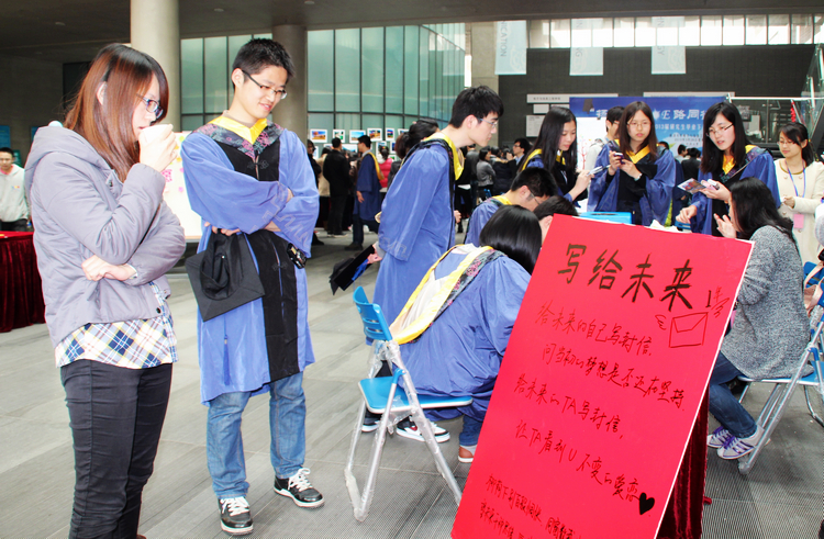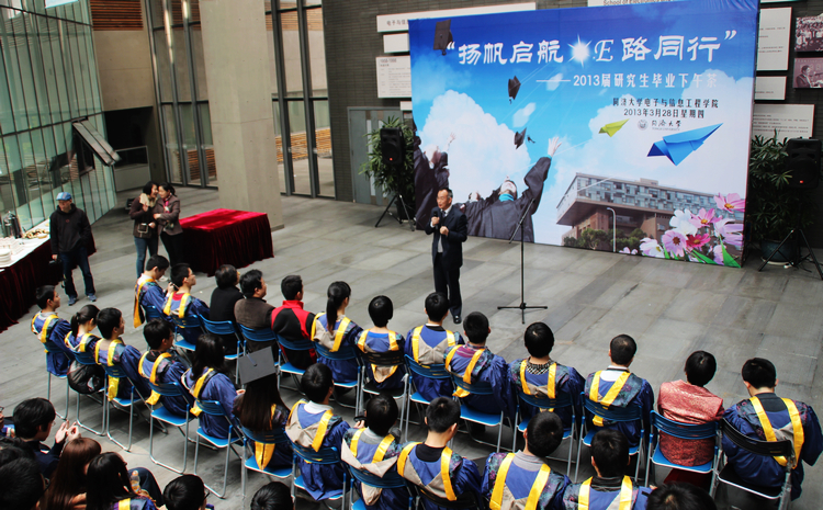 毕业日活动中, 2013届毕业研究生还通过“众人绘E树”,用指纹绘制繁枝茂叶,表达对学院和母校的叶根情谊;通过“时光邮箱”寄语未来的自己;通过“你E言,我E语”向学院和母校寄托了感恩与祝福,祝福学院的发展蒸蒸日上,祝福学校的明天更加美好。