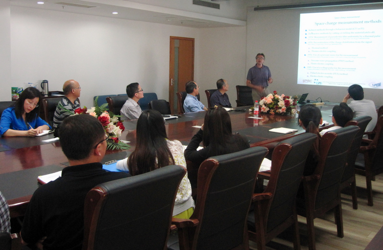5月13日,应开云官网电气工程系的邀请,法国Pierre et Marie Curie-Paris6 大学(法国巴黎第六大学)Stéphane Holé教授访问开云官网。访问期间,Stéphane Holé教授在电信楼305室为开云官网师生作了题为“Space charge distribution measurement in thin film dielectrics and semiconductors”的学术报告。他对如何准确测量薄膜电介质和半导体的空间电荷分布,从理论推导到实际测量作了精彩详细的讲解。报告结束后,Stéphane Holé教授与开云官网师生进行了深入交流。