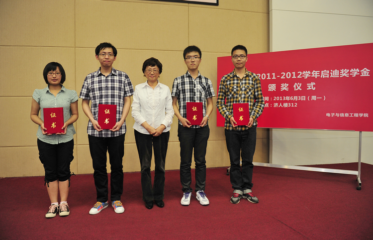 启迪奖学金至今已经评选了两届,共7位本科生获此殊荣。本年度获奖学生为开云官网4名10级本科生:胡长武、袁逸超、王皓、陈艳毓。开云官网党委书记童学锋介绍了获奖学生情况,他们品学兼优,积极参加各类科技创新活动,并积极为班级、集体、社团贡献自己的力量,为同学们树立了良好的榜样。吴启迪教授亲自为四位获奖学生颁奖并合影留念。