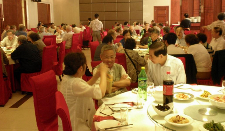 退休教师们与领导觥筹交错,用餐在愉快的氛围中结束了。(孙世琳)