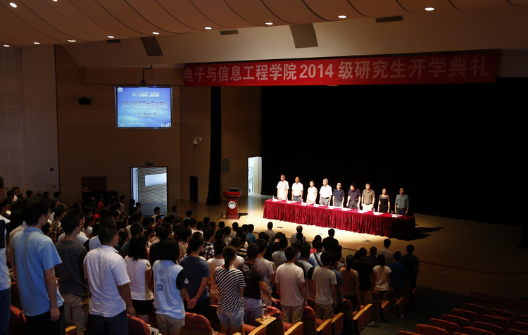 开学典礼在庄严的国歌声中开始。首先,学院院长陈启军教授代表学院、学校欢迎350名新人加入同济电信大家庭。陈院长结合学院、学科的发展历史及学院的科研力量和人才培养情况,鼓励同学们树立远大目标,敢于怀疑与创新,充分利用大学的资源,丰实自己的知识体系,提升学术科研能力,早日实现自己的梦想。