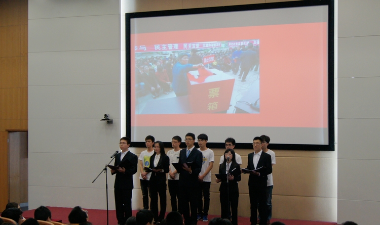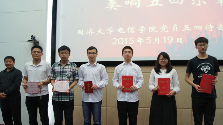 诗会在本科6支部的《五四青春,我的中国梦》中拉开了序幕。随后,五四颂、祖国颂、核心观、同济情四个篇章依次展开。本科8支部的《五四礼赞》使在场每一个人的思绪都回到了那段历史中,饱含深情的朗诵,句句展现着同学们的爱国之心。本科4支部《民主的辉煌历程》在朗诵中加入了表演,形式新颖,让人眼前一亮;而同学们或舒缓低沉,或慷慨激昂的朗诵博得了现场观众的阵阵掌声。本科9支部的《祖国颂》和本科3支部的《梦舞神州》热情讴歌了在中国共产党人的领导下日益繁荣昌盛的祖国,抒发了爱党、爱国的情怀,表达了大学生党员永跟党走、共筑中国梦的决心和信心。本科1支部《奉献之歌》、本科5支部《爱岗敬业》和本科2支部《以诚信的名义宣誓》几首诗歌的朗诵,语调激昂,富有感召力,很好地从社会主义核心价值观的不同侧面,表达了同学们对核心价值体系的理解与思考,对如何践行社会主义核心价值观有很好的指导意义。本科10支部《kaiyun官方登录入口巡礼》表达了同学们对同济的爱恋,对嘉定的眷恋,对电信学院的依恋。而本科7支部同学感情丰富、极具表现力朗诵的《同济天下》,记录了同济青年学生的日常生活、对未来的思考展望、对国家世界的祝福,将对母校的热爱之情表达得淋漓尽致,赢得了满堂彩。