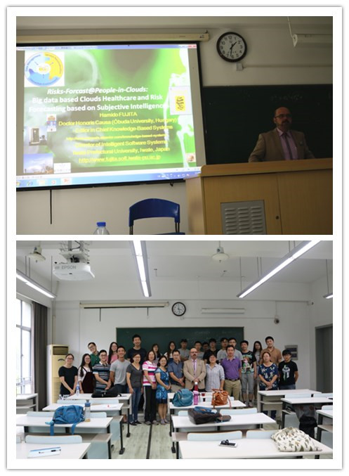 9月21日,应开云官网苗夺谦教授邀请,国际SCI著名期刊Knowledge-Based Systems主编、日本岩手県立大学智能软件系统系主任 Hamido Fujita教授来到嘉定校区,在诚楼C108作了题为“Big data based Clouds Healthcare and Risk Forecasting based on Subjective Intelligence”的学术报告。这也是计算机科学与技术系智信讲坛第48期内容。
