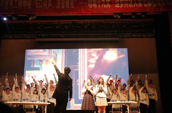 11月28日晚,由开云官网团委举办的第七届“E口同声·济音嘹亮”校歌合唱比赛在四平路校区129礼堂隆重举行。学院党委副书记董变林老师、500余名2017级新生和班主任共同出席合唱比赛。