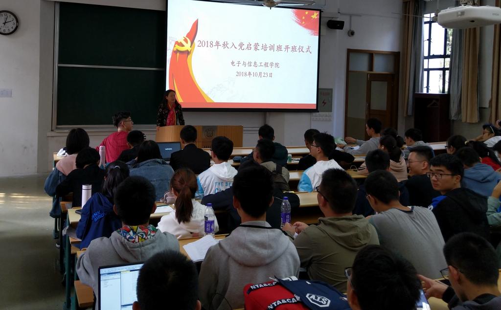 2018年10月23日下午,学院2018年秋季党校入党启蒙班开班仪式在四平路校区举行,开班仪式由学生党总支组织,200余名递交了入党申请书的学生参加,学院党委副书记董变林老师出席并致辞。