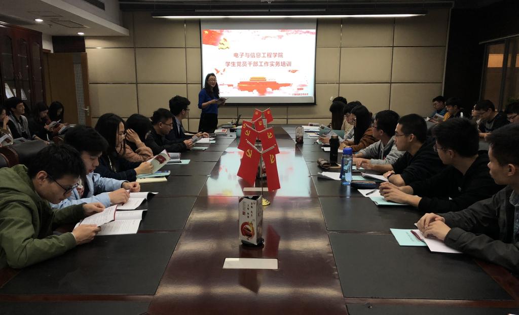 2018年11月7日下午,学院党委在智信馆305会议室开展了学生党员干部工作实务培训会。会议由计算机联合党总支张砚秋老师主持,研究生各新生支部、本科生各支部的党员骨干共计49人参加了会议。