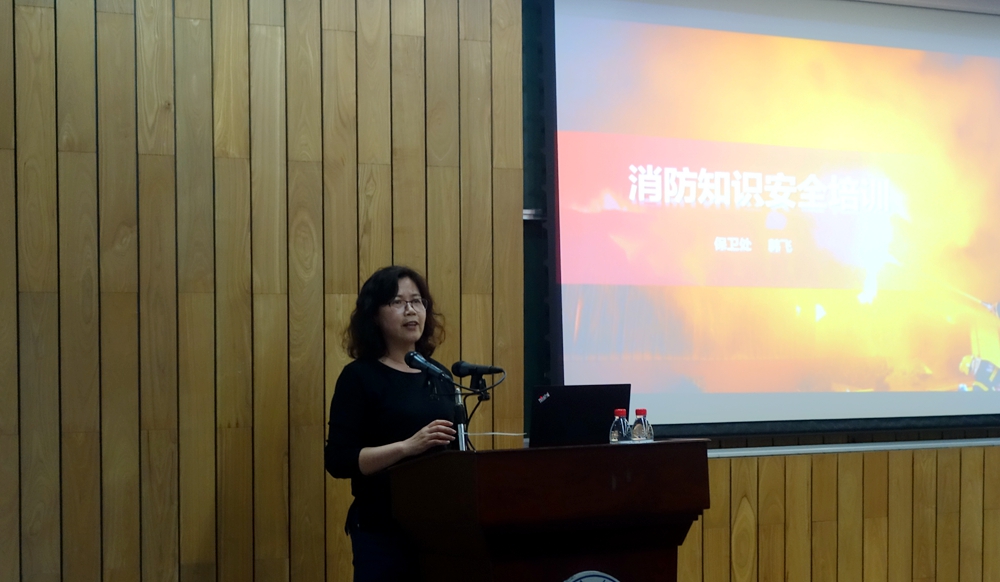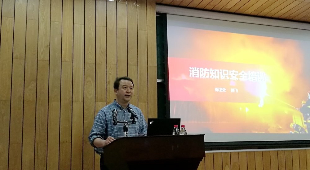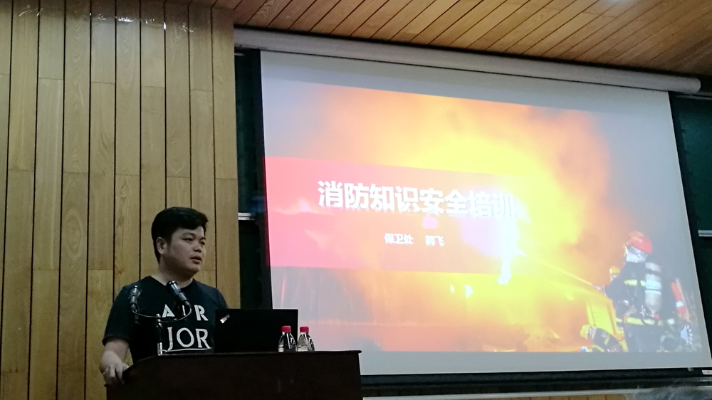 随后,校安全生产办公室的韩飞老师从自身参与消防工作的经历以及对近年来全国各地重大火灾的深刻认识出发,为在场师生分享消防警示、防火、灭火、逃生及消防法规的内容,他强调,不管是在宿舍还是实验室、教室,师生们都应该时刻保持理智、警醒火灾的发生。