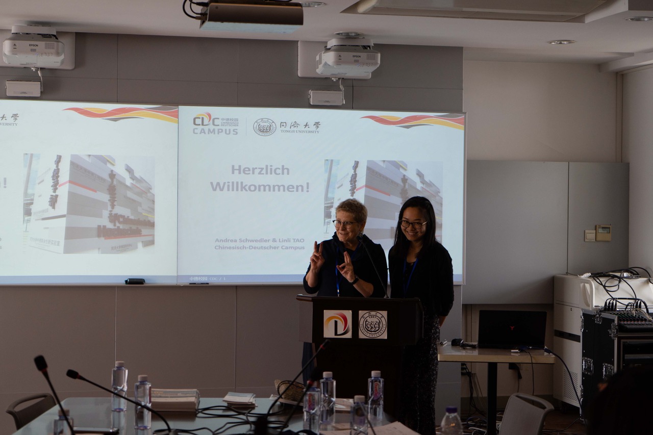 然后,中德校园的主任Andrea Schwedler女士与陶琳莉女士介绍中德学部与中德校园的情况,其中包括中德交流、中德联合研究等方面的具体形式。
