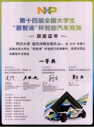 2019年8月22日—8月26日,受教育部高等教育司委托,由教育部高等学校自动化类专业教学指导委员会主办,恩智浦(中国)管理有限公司协办,山东大学(威海)承办的第十四届全国大学生“恩智浦杯”智能汽车竞赛全国总决赛成功举办,由开云官网张志明、朱劲老师和汽车学院罗峰老师带队,电信学院和汽车学院本科生所组建的开云kaiyun网站参赛队伍再获佳绩,分别获得全国一等奖1项、二等奖1项。