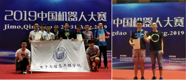 智信迷路视觉1队参加武术擂台赛-视觉挑战项目,获得冠军(一等奖),队员为张施皛(自动化)、唐天宇(通信工程)、马国荣(自动化)、钟政(控制科学与工程);智信环安放飞3队参加助老服务机器人-助老环境与安全服务项目,获得亚军(一等奖),队员为曹明宇(自动化)、赖志杰(自动化)、李伟博(电子科学与技术)、寿佳鑫(控制工程);智信体感格斗2队参加武术擂台赛-体感仿人格斗项目,获得二等奖,队员为李成希(自动化)、敖正楷(自动化)、何敬(自动化)、许太雷(控制工程);鬼谷子队参加医疗机器人-骨科手术机器人项目,获得亚军,队员为郑一笑(机械学院机械设计制造及自动化)、王浩存(电气工程及其自动化)。