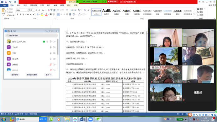 为进一步做好新冠肺炎疫情防控工作,坚决贯彻落实学校和学院党委相关工作要求,计算机联合党总支在3月24日下午召开在线ZOOM视频会议。
