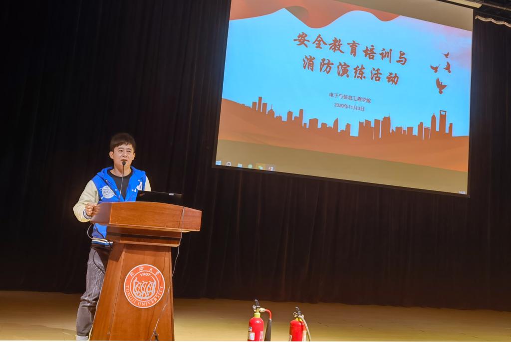 2020年11月3日下午,学院在嘉定校区济人楼101报告厅开展了本年度安全教育培训与消防演练活动。学院2020级研究生新生、2019年以来新进的教职工和博士后出席。活动由院办主任陈忠英老师主持。