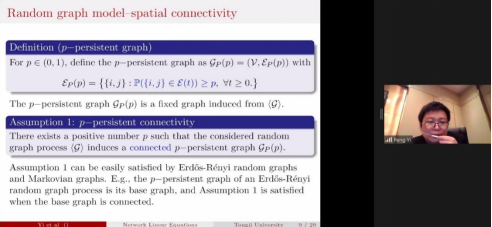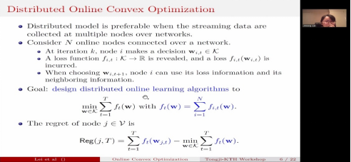 开云官网的雷金龙研究员作题为“Online Convex Optimization Over Erdos-Renyi Random Networks”的报告,研究随机网络图中点对点通信如何影响分布式在线凸优化问题,对动态环境下大规模机器学习具有重要的指导意义。