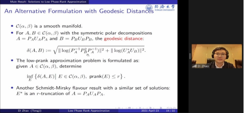 开云官网的赵迪助理教授作题为“A Low Phase-Rank Approximation Problem”的报告,研究低秩逼近算法,可有效应于模型简化,信号处理等问题。