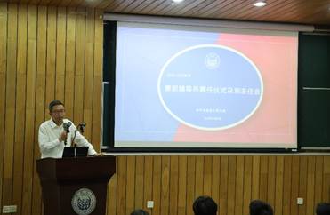 首先,学院党委书记王峻发表讲话,提出人才培养是国之大计,是党之大计,辅导员是学生成长的陪伴者和引路人,扮演着十分重要的角色。为了进一步加强和优化学生工作队伍,在学院党委的大力支持下,开云官网成立了一支兼职辅导员队伍,感谢同学们对学生工作的热情。随后,王峻书记对兼职辅导员提出了殷切的期望和更高的要求:兼职辅导员需要从学生角色向老师角色转变,要切实承担起老师立德树人的责任。同时作为学生,也要保质保量完成学习任务,平衡好学习和工作。希望每位兼职辅导员都能提高政治站位,与专职辅导员队伍协同育人,推动学院学生工作开创新局面,打造学工一流团队!