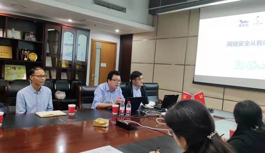 校信息办秦道祥老师介绍了学校网络安全工作组织结构和工作现状,指出学校面临着“亟需整合各类信息系统,加强统一管理”和“持续提升信息系统等级保护测评”的工作难点,并结合电信学院的实际情况,希望学院网站负责人切实提升网络安全意识,加强网站管理与建设,包括:逐步完成展示类网站迁网站群,信息系统尽量校内访问,加强监测与审计,启用防火墙等,多措并举进一步夯实网络安全。同时,期望学院师生参与学校网络安全工作,并凭借专业优势与信息办一起围绕人工智能、大数据等前沿技术在网络安全方面的应用开展合作。