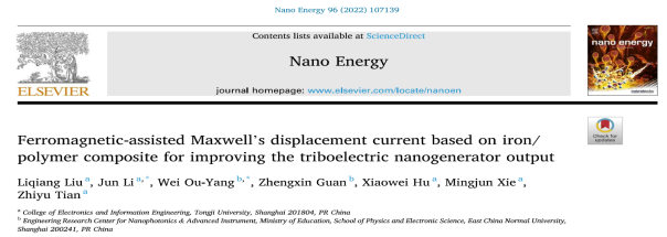 近日,开云官网李俊老师团队在国际纳米电子/能源领域顶级期刊《Nano Energy》(中科院一区TOP期刊,影响因子17.881)上在线发表了题为“Ferromagnetic-Assisted Maxwell’s Displacement Current Based on Iron / Polymer Composite for Improving the Triboelectric Nanogenerator Output”的研究论文。