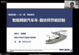4月23日晚,由学院和上海自主智能无人系统科学中心联合举办的智·信讲堂-抗“疫”特别讲座系列线上开讲。本次讲堂邀请到学院郭露露研究员作“智能网联汽车车-路协同节能控制”的主题报告,由张皓教授主持。